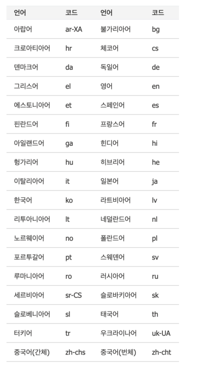 GoogleTranslate(텍스트, 출발어, 도착어)