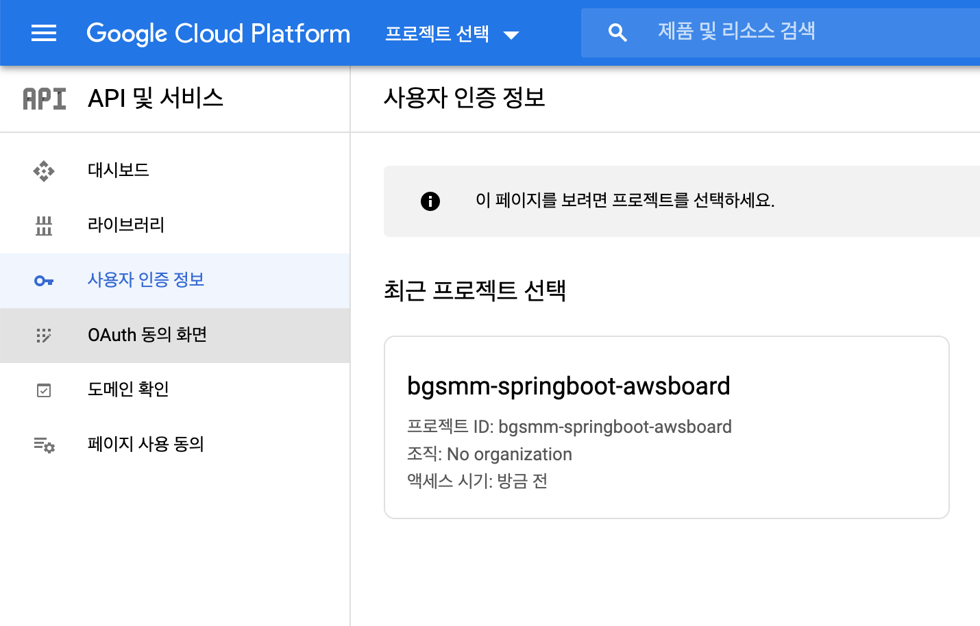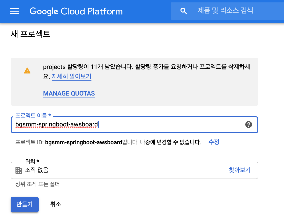 1. 구글 클라우드 플랫폼(https://console.cloud.google.com/) 에 접속합니다.