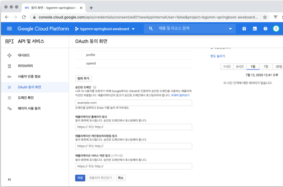 구글 OAuth2 연동용 클라이언트 아이디 및 비밀번호 발급받는 방법