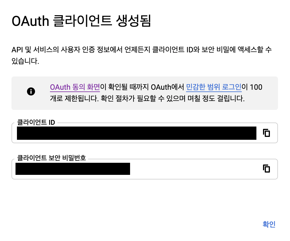 9. [OAuth 클라이언트 ID]를 클릭합니다.