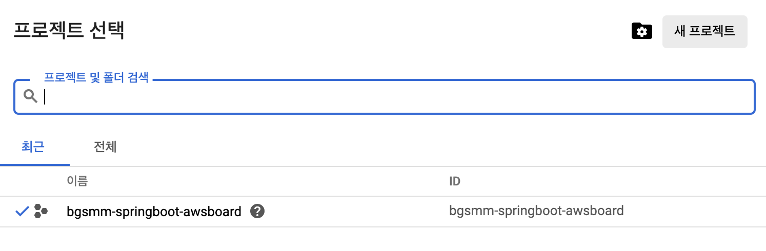 6. 방금 만든 프로젝트를 선택합니다.