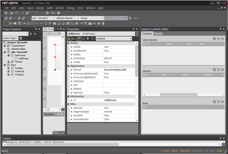 childframe으로 이동 후 Appearance의 formurl에서 설정합니다.