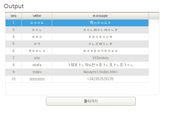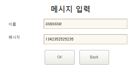 폼으로 writer와 message를 보내고 처리 결과를 받는 코드입니다.