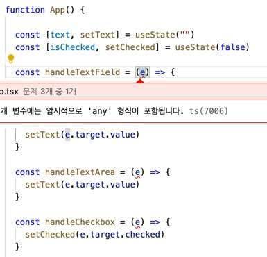 ‘e’ 매개 변수에는 암시적으로 ‘any’ 형식이 포함됩니다.ts(7006)