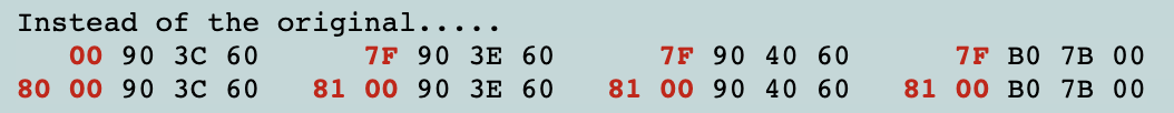 그러나 실행 상태는 제어 바이트 8x ~ Ex에만 적용됩니다. F0 ~ F8는 제어 바이트가 취소되고 F9~ FF는 제어 바이트가 일시적으로 무시됩니다(따라서 이전의 실행 상태를 가져옴).