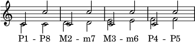 반음의 수(semitone)로 식별되는 음정의 경우 전위는 12에서 해당 숫자를 빼서 얻습니다.