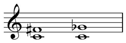 위의 논의는 일반적인 튜닝 시스템인 12음 평균율(12-TET)의 사용을 가정합니다. 그러나 다른 역사적 의미가 있는 튜닝 시스템에서는 F♯ 및 G♭와 같은 음 쌍의 피치가 반드시 일치하지 않을 수 있습니다. 이 두 음표는 12-TET에서 조화롭지만 다른 튜닝 시스템에서는 그렇지 않을 수 있다는 것입니다. 그러한 경우에 형성되는 음정도 조화롭지 않을 것입니다. 예를 들어 qurter-comma meantone에서 위의 예에 표시된 네 개의 음정이 모두 다를 수 있습니다.