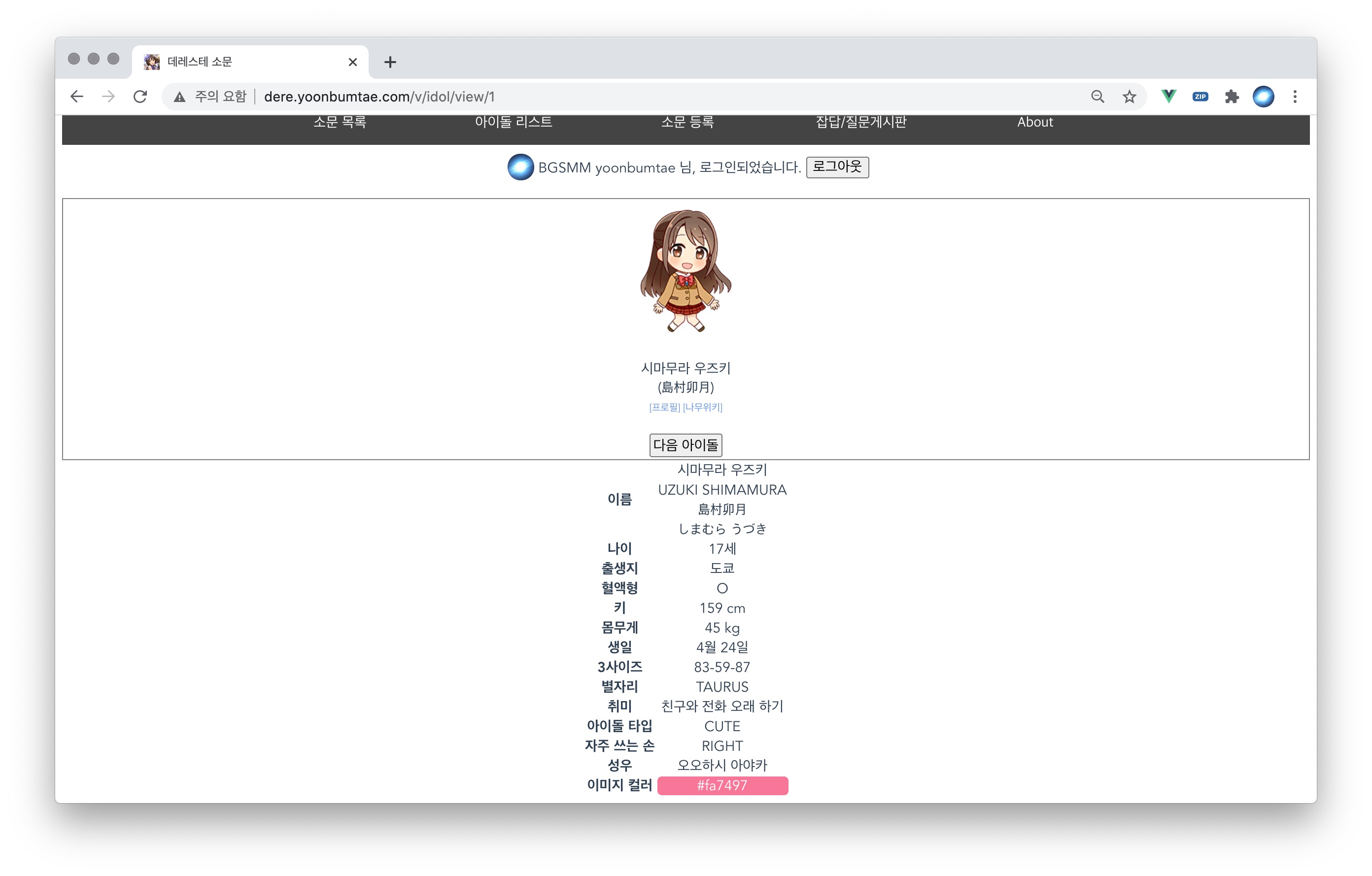 - 캐릭터별 개별 프로필, 외부(나무위키) 링크 기능