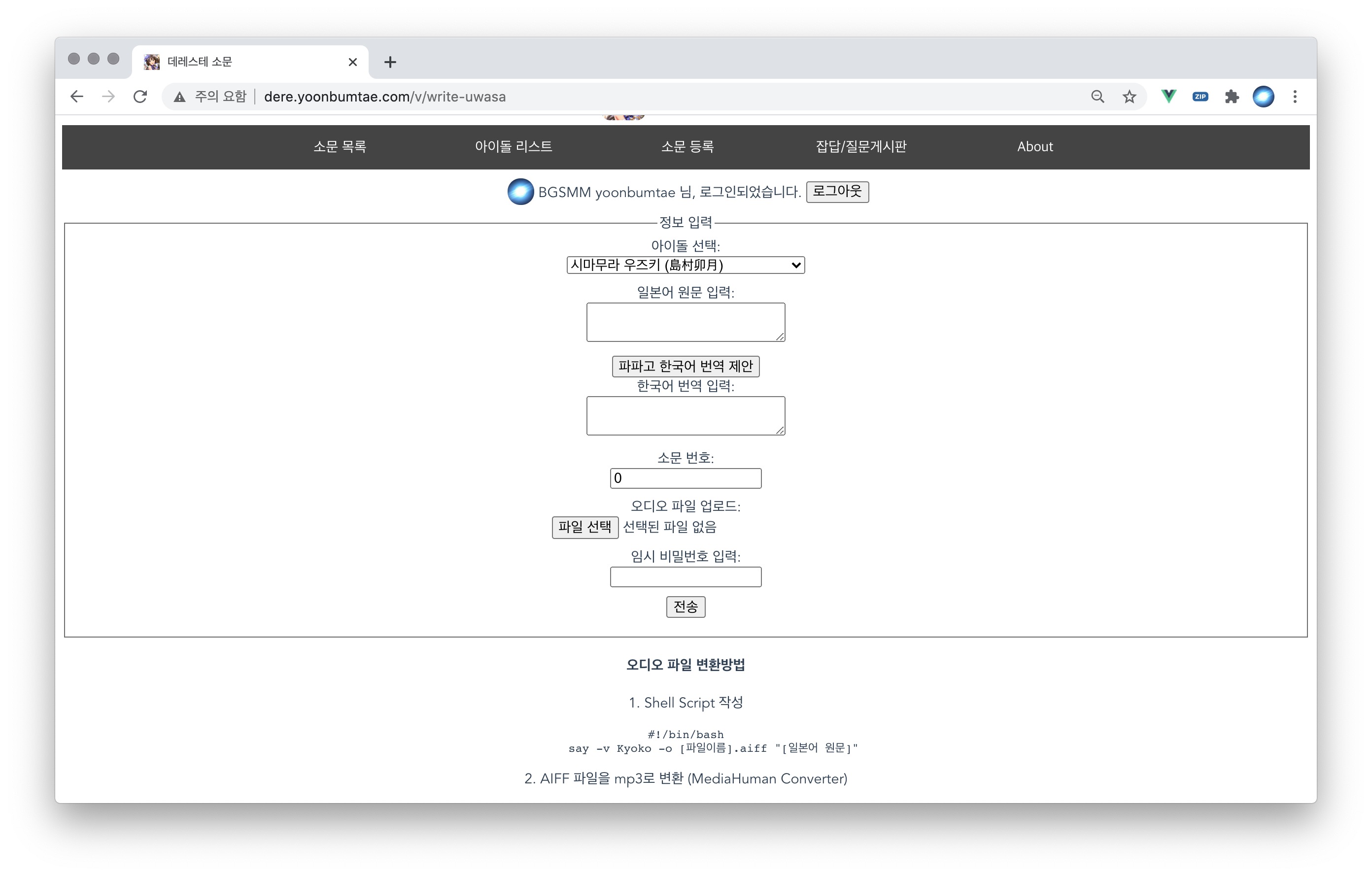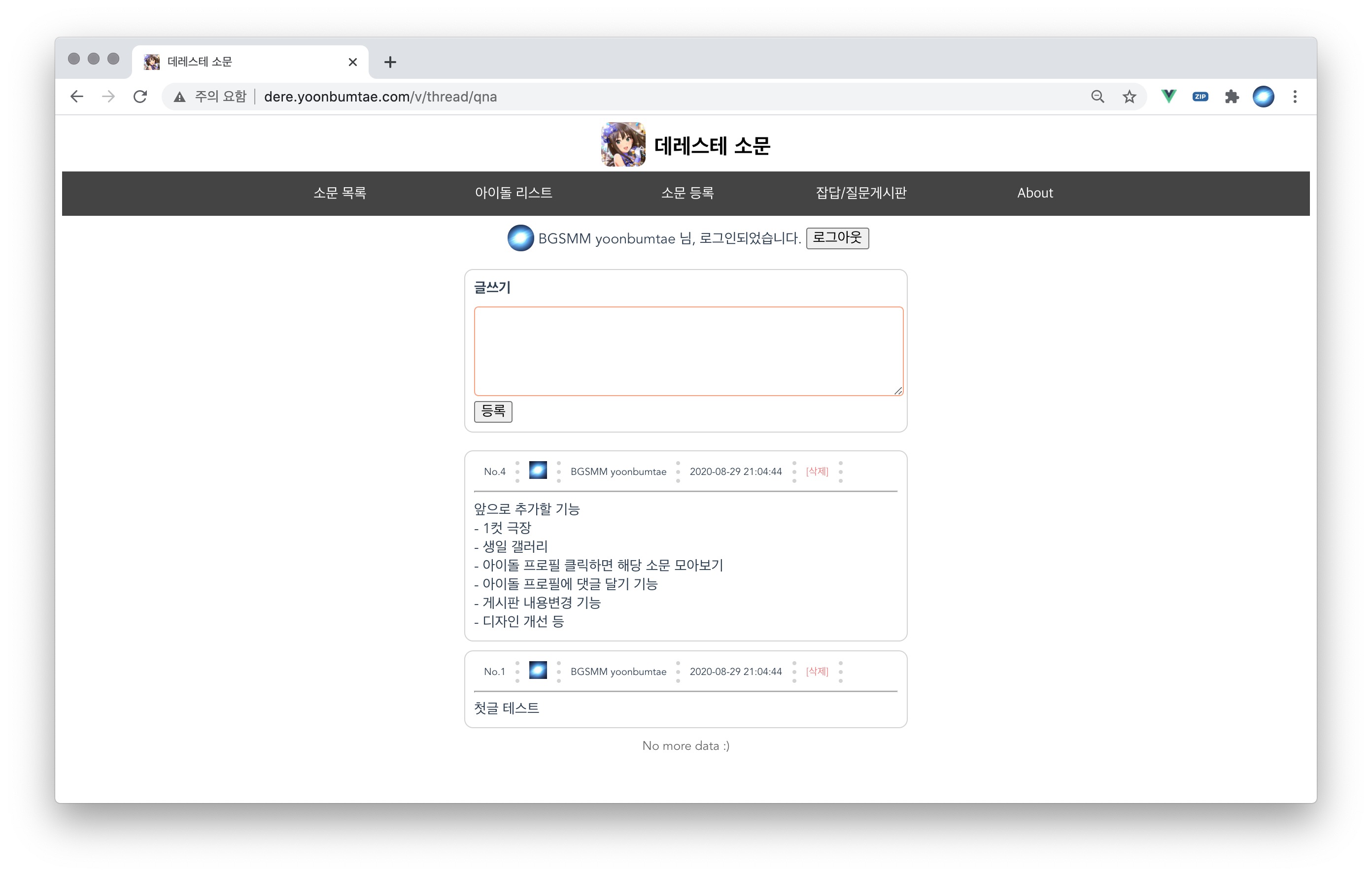 사이트는 AWS 프리티어 기간이 만료되어 폐쇄했습니다. 서비스 당시 모습을 영상으로 볼 수 있습니다.