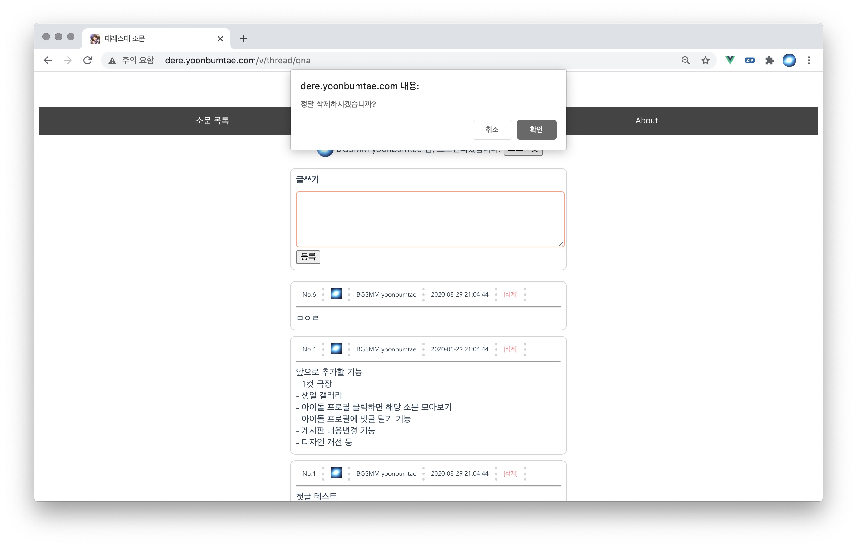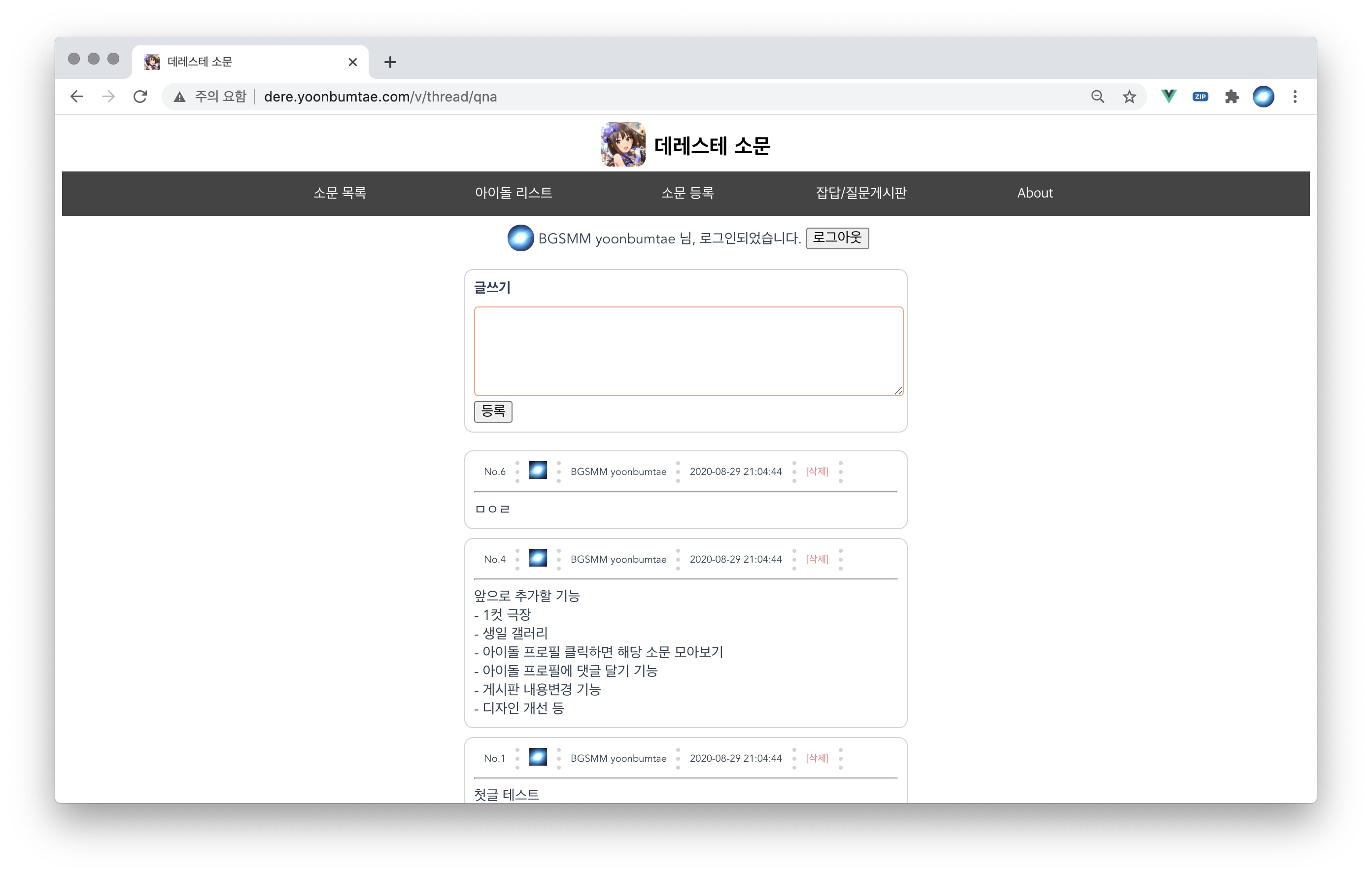 - 삭제 기능: 삭제는 본인 게시글만 가능