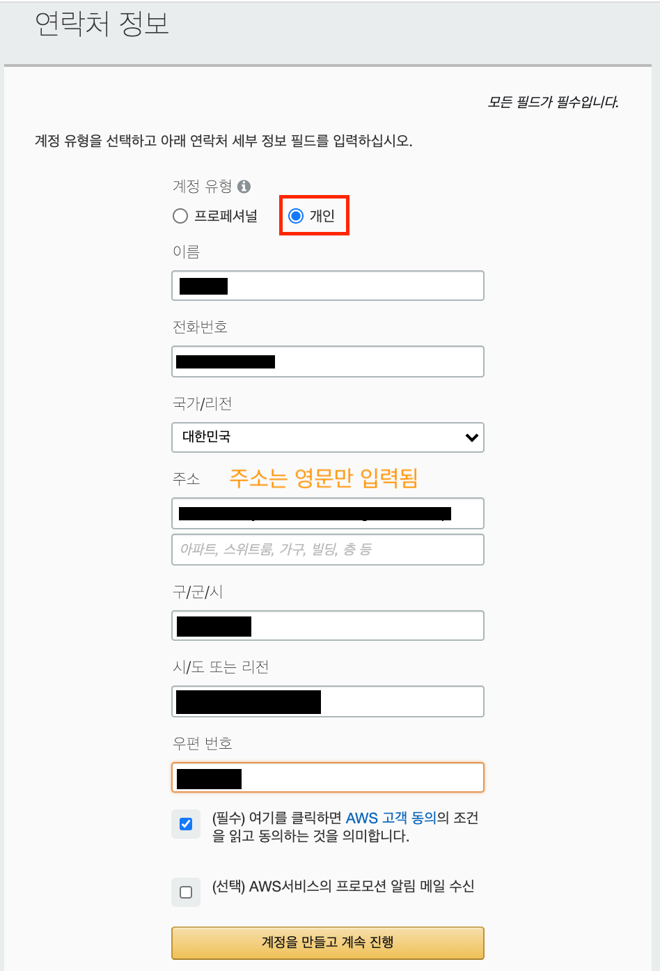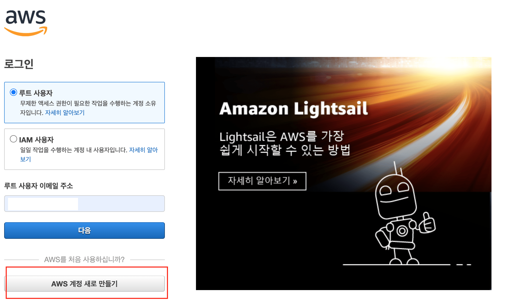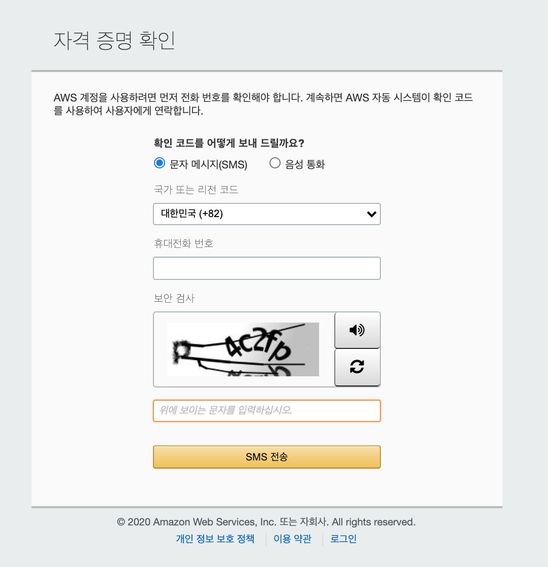 1) 아마존 웹서비스 회원가입 페이지 접속