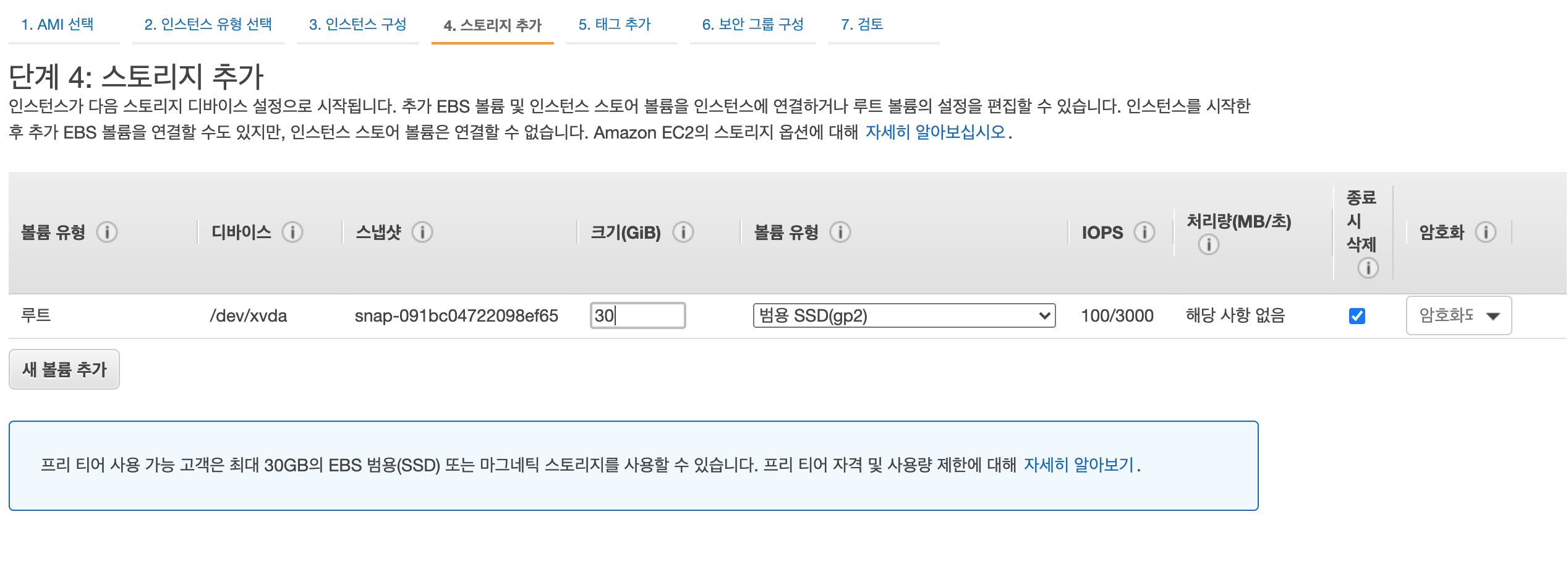 10) 스토리지 추가에서 크기를 ‘30’으로 입력