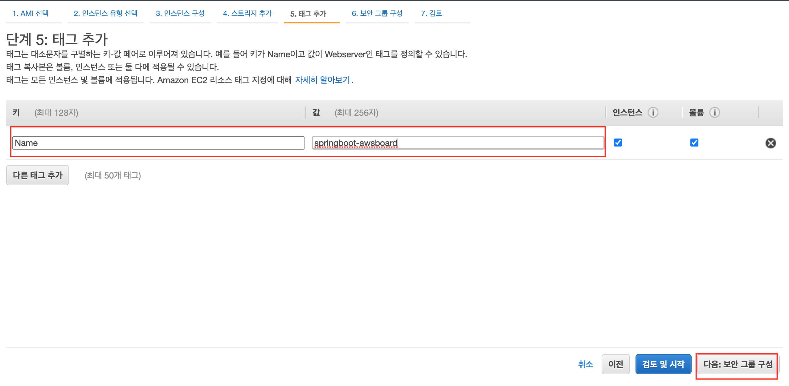 11) 태그 추가에서 키를 ‘Name’으로 하고, 값에 식별자를 입력