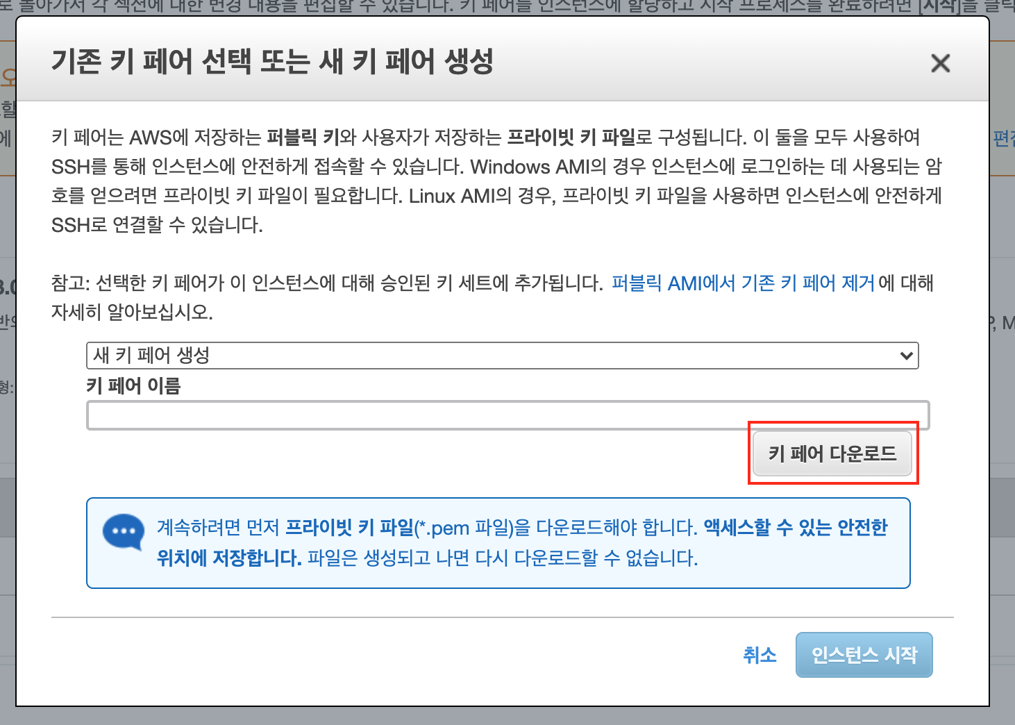 14) 키 페어 파일 다운로드 후 안전한 곳에 보관
