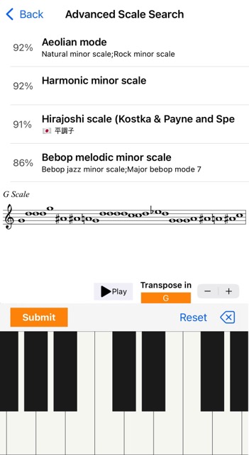 - 고급 스케일 검색: 원하는 음을 기준으로 유사한 스케일을 찾아드립니다. 건반으로 멜로디만 자유롭게 입력하세요.