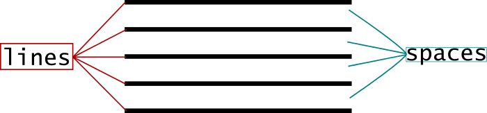 연속적인 오선 위치를 차지 => 3개의 line과 2개의 space를 포함