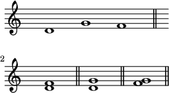 예를 들어, 음정 C-G는 위의 C에서 G까지의 음표가 5개의 문자 이름(C, D, E, F, G)을 포함하고 위치를 포함하여 5개의 연속적인 오선 위치를 차지하기 때문에 5도(P5로 표시됨)입니다.
