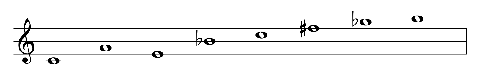 위의 악보에서 중복해서 등장하는 음들은 제외하고, 나머지 음들을 나열하면 다음과 같은 음들이 추출되게 됩니다.