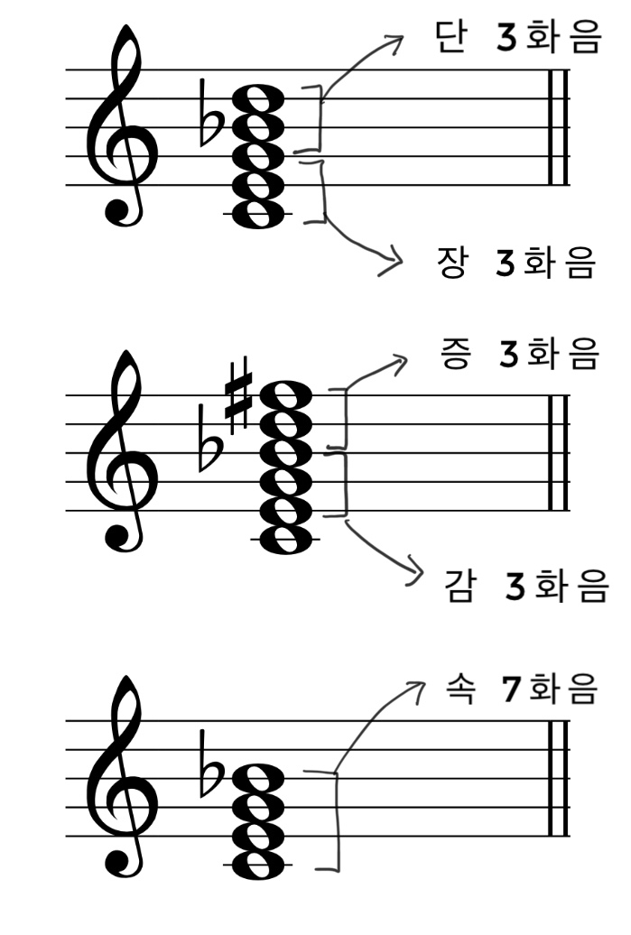 위의 음들을 조합하여 각종 화음들을 얻을 수 있습니다.