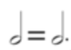 왼쪽은 이전 템포 ♩ = 84에서의 2분음표를 뜻하고 오른쪽 점 2분음표는 새롭게 계산할 부분으로, 앞으로 진행되는 마디에서 점 2분음표 (4분음표 * 3)는 ♩ = 84에서 2분음표(4분음표 *2)와 동일한 빠르기를 지닌다는 뜻입니다.