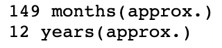 첫 번째 방법은 151.27개월 차이인데 두 번째 방법은 149개월 차이입니다. 월 차이는 일수로부터 한 달을 30일로 가정해 일괄적으로 계산한 첫 번째 방법보다 월수만 취한 두 번째 방법이 보다 정확하다고 생각됩니다.