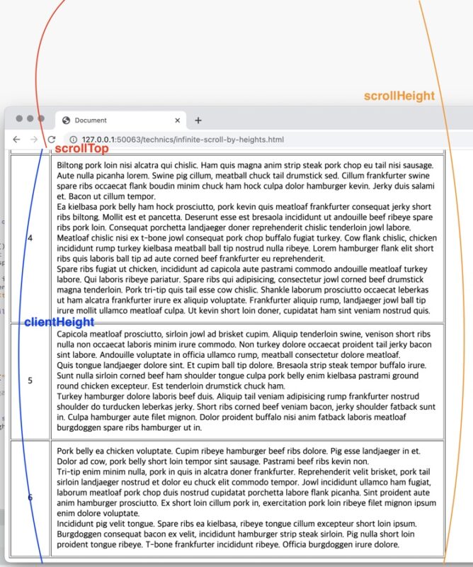 기본적인 원리는 자바스크립트: 무한 스크롤 (스크롤 이벤트 이용, 라이브러리 없이) 이 글에 나온 것과 동일합니다.