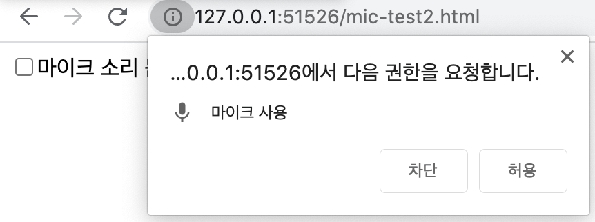 여기서 사용자가 허용 버튼을 눌러야 이후 녹음 작업이 진행이 됩니다.