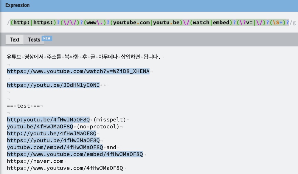 3. 텍스트를 대체하는 함수를 만듭니다. (youtubeParser)