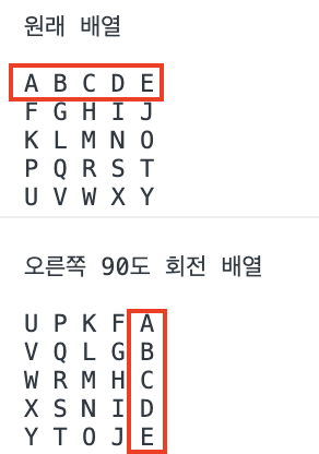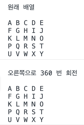 정방형 배열은 행과 열의 수가 같은 2차원 배열을 뜻합니다. 이러한 정방형 배열은 회전할 수 있는 경우는 4가지 밖에 없습니다.