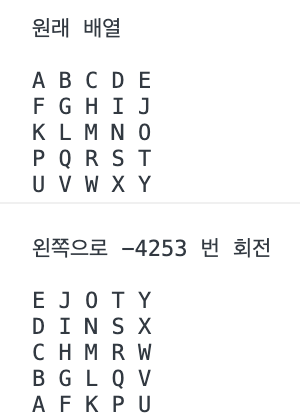 이 공식들을 이용해서 배열을 회전하는 모든 경우의 수에 대응할 수 있는 함수 코드를 추가합니다.