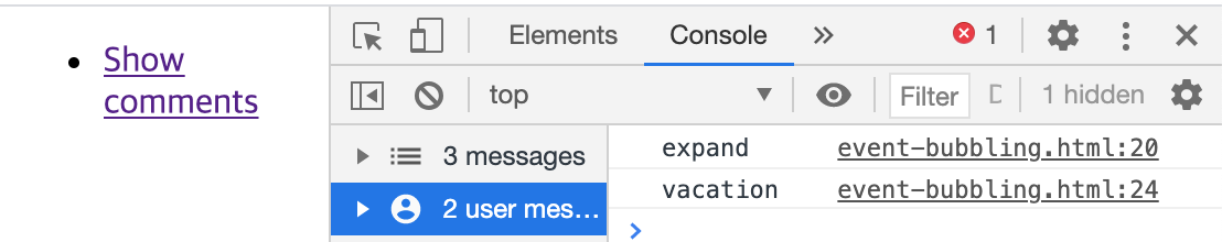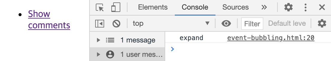 이 코드의 버블링을 막은 결과는 다음과 같습니다.