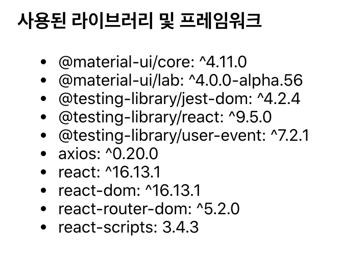 <h3>사용된 라이브러리 및 프레임워크</h3>
