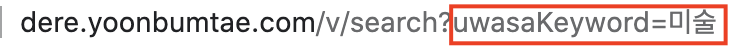 URL의 쿼리 파라미터란 아래 빨간색 박스처럼 ? 뒤에 지정하는 파라미터를 뜻합니다. 여러 개를 연결할 때는 & 를 씁니다. 쿼리 스트링(query string)이라고도 합니다.