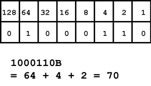 예를 들어 십진법으로 표기한 정수 70을 이진법 표기로 변환하면