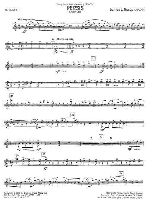 이국적! 신비한 중동 양식, 다채로운 오케스트레이션, 놀라운 “추격(chase)”이 결합된 James ㅣL. Hosay(제임스 L. 호세이)의 PERSIS(페르시스; 페르시아를 뜻하는 그리스어)는 다음 콘서트를 위한 매우 특별한 제안입니다. 매혹적이고 가슴 아픈 오보에 솔로 러브 테마(플루트로 이어짐)는 확실히 꽤 오랜 시간 동안 콘서트 밴드를 위해 쓰여진 가장 아름다운 악절 중 하나일 것입니다. PERSIS는 밴드의 가장 기억에 남는 공연 중 하나가 될 것입니다. 진정으로 차원이 다른 작품을 프로그램할 기회를 놓치지 마세요.