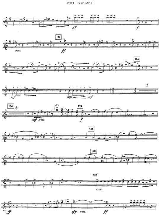 ‘페르시스’(Persis)의 연주 시간은 약 8분 10초. 악보는 2000년에 미국의 출판사 Curnow Music Press에서 출판되었다. (출처)