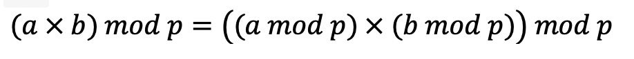 - 중간 계산 과정에서 산술 오버플로(arithmetic overflow)를 방지하기 위해 나머지를 취하며