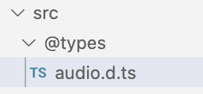 3. src 폴더 밑에 @types 폴더를 생성한 뒤, 그 안에 Audio.d.ts를 생성합니다.