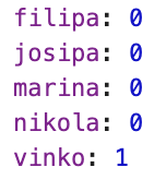 예제 #2 에서 객체 변수, vinko만 완주하지 못했으므로 값으로 1을 가집니다.