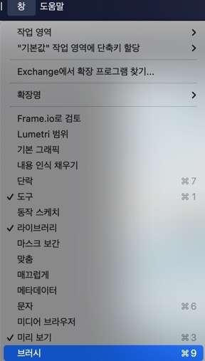 창 > 브러시클릭해서 브러시 패널 추가- 브러시 크기 조절 (또는
