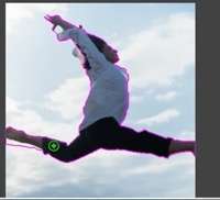 브러시 크기를 조절한 후, 인물 위 뼈대를 그리면 분홍색 선으로 로토 브러시가 따집니다.