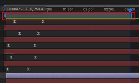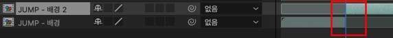 배경이 슬로우모션 되는 부분 (예제 영상에서는 15프레임)에서 command + shift + D 를 눌러 복제하고 자릅니다.