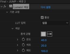 배경 2 레이어에 효과 및 사전 설정을 추가합니다. Lumetri 색상 및 곡선을 추가합니다.