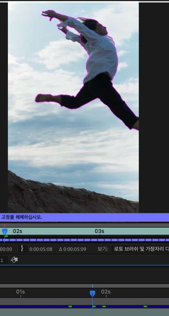 로토 브러시 영역은 프레임별로 수정 가능합니다.