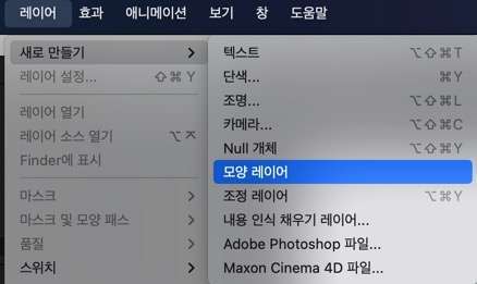 레이어 > 새로 만들기 > 모양 레이어 메뉴를 눌러 추가합니다.
