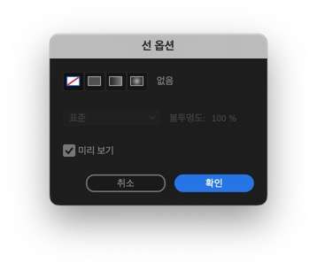 선 텍스트를 클릭선 옵션 창에서 선 없음을 클릭합니다.