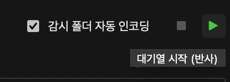 Adobe Media Encoder 창 오른쪽 위에 있는 초록색 화살표를 누르면 인코딩이 시작됩니다.