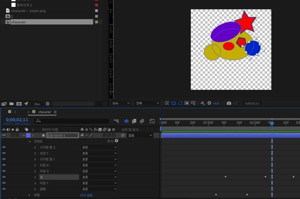 Adobe After Effect 기초 (2) - 로토브러시, 키프레임, 모양 레이어, 영상 파일 출력