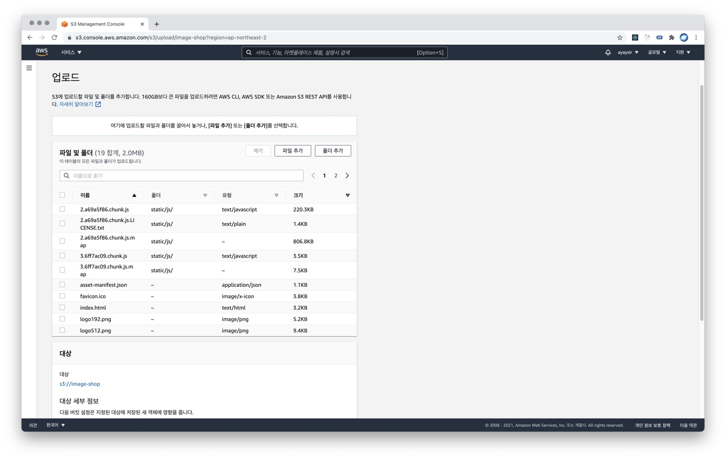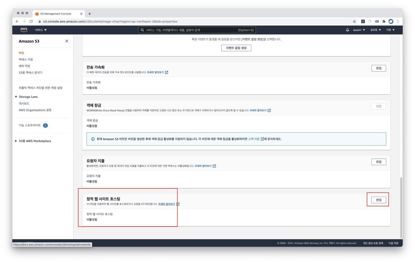 Amazon Web Service(AWS) S3 서비스를 이용해 웹 호스팅 하기 (정적 웹 페이지 업로드)