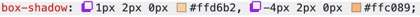 box-shadow: 1px 2px 0px #ffd6b2, -4px 2px 0px #ffc089;